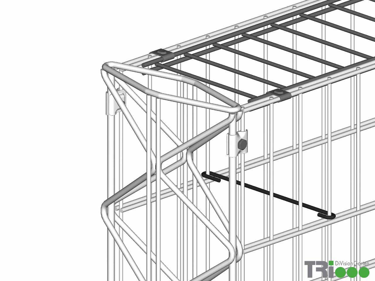 Bei sogenannten Gabionenwänden, oft auch Pergonen genannt, sind die Körbe wesentlich schmaler als die Standardkörbe. Gabionenwände gibt es mittlerweile schon ab 4 cm Breite, während die Standard-Gabionenkörbe i.d.R. erst bei 50 cm Breite starten. Der Aufbau erfolgt hier meist mittels speziellen Montageklemmen oder Verschraubungen, mit denen zwei Gittermatten zwischen Pfosten befestigt werden und so einen Korb bilden. Am Beispiel einer Trioo-Gabionenwand: Zwischen einbetonierten oder aufgeschraubten Pfosten aus Abb 1. werden die Gittermatten Abb 2. mit Hilfe der Universalklemmen befestigt. Abstandhalter werden nach einem vorgegebenen Plan eingebracht. Die Reihenfolge, wann die Pfosten einbetoniert werden – vorher oder nach Vormontage -, hängt vom Können und der Erfahrung der Monteure ab. Erfahrene Monteure haben in der Regel eine „Lehre“ für die Pfostenabstände und betonieren deshalb meisten im Vorfeld. Anfängern empfehlen wir jeweils den ersten Pfosten zu betonieren und anhand der Matten den nächsten Pfosten auszurichten und so Stück für Stück die Gabionenwände aufzubauen. Alternativ kann die Trioo-Gabionenwand auch vormontiert einbetoniert werden. Die Größe der Fundamente für die Pfosten richtet sich nach den Gegebenheiten und Umwelteinflüssen vor Ort. Bei schlechtem Untergrund (z.B. Sandboden) ist unter Umständen ein Bodenaustausch notwendig. Wie bei den Gabionenkörben liegt die Verantwortlichkeit für die Standsicherheit und Statik i.d.R. beim Durchführenden und sollte unbedingt sichergestellt sein.