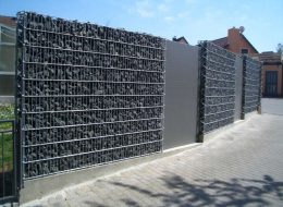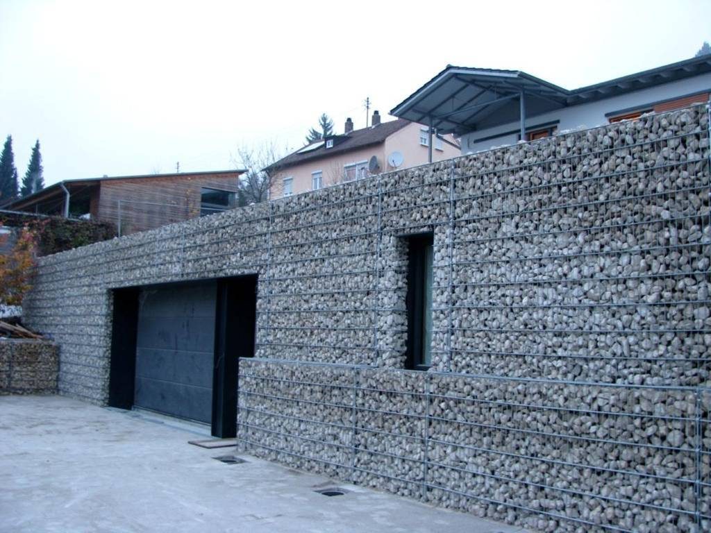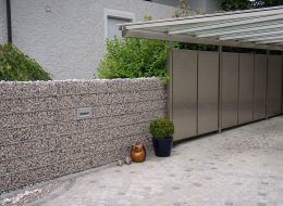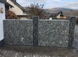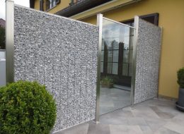 - Gabionenwände dienen gleichzeitig als Sichtschutz und robuster Zaun