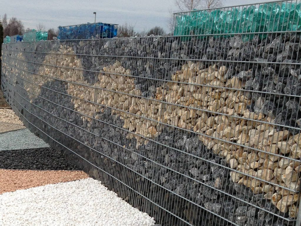 Für Sichtschutz, Einfriedung oder Lärmschutz kommen üblicherweise Gabionenwände zum Einsatz.