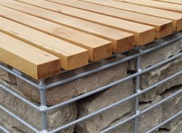 Die Bankauflagen werden gerade mit aufklaffender Fuge befestigt und bestehen aus hochwertigem Akazienholz. Alle Bänke werden standardmäßig verzinkt ausgeliefert und können auf Wunsch pulverbeschichtet werden. Bitte beachten Sie, dass wir bei Anfragen Ihre gewünschten Maße und Formen benötigen. Die Bilder sind nur Beispiele für Möglichkeiten, da alle Gabionen maßgefertigt werden.
