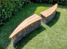 Diese toll geschwungene Sitzbank „Swing“ wird in unserer Manufaktur in liebevoller Handarbeit gefertigt. Sie ist tropfenförmig stärker oder schwächer geschwungen, je nach Wunsch. Bitte beachten Sie, dass wir bei Anfragen Ihre gewünschten Maße und Formen benötigen. Die Bilder sind nur Beispiele für Möglichkeiten, da alle Gabionen maßgefertigt werden.