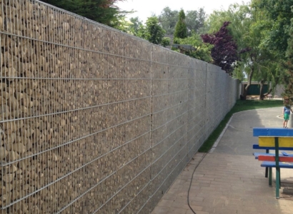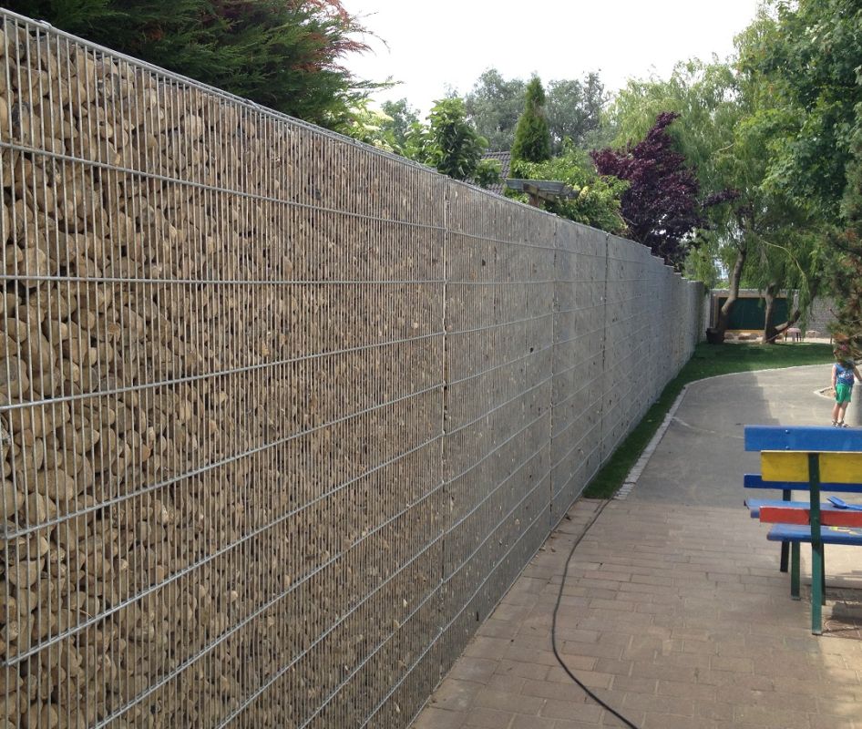 Die Lärmschutz Gabionenwand der Marke Triooo ist gerade mal 23 cm breit. Trotzdem sind Höhen von 103 bis 243 cm möglich. Die Stein und Stahl Optik wirkt elegant und modern. Die Elemente sind im Standard 253 cm lang . Ein weiterer Pluspunkt ist die Maschenweite von 25 x 200 mm damit kann die Gabione mit Zierschotter von 32 mm bis 56 mm Korngröße (Herstellerempfehlung) befüllt werden.