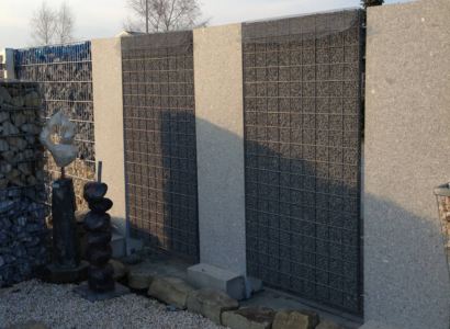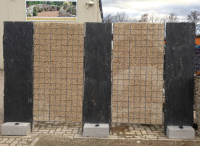 Eine absolute Neuheit sind diese Splittgabionenwände! Die Breite beträgt in der kleinen Ausführung gerade einmal 4 cm und die Maschung ist so klein dass problemlos Splittkörnungen in einer Größe von 8-16 mm eingefüllt werden können. Zur Befestigung werden spezielle Pfosten benutzt oder die Wände werden zwischen Natursteinwänden montiert