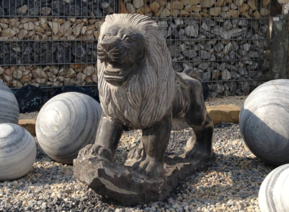 Die dekorative Löwenskulptur ist ein echter Blickfang in Ihrem Garten. Der aufwändig bearbeitete Blaustein ist ein echtes Kunstwerk. Seine Oberfläche wird sehr fein ausgearbeitet und ist teilpoliert. Diesen strammen Burschen gibt es in 2 Ausführungen: