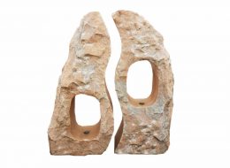 Die Twin Rocks in der Premium Ausführung sind zusätzlich noch mit großen Löchern versehen. In den großen ausgefrästen Löchern sind zusätzlich noch Brunnenlöcher gebohrt die für Wasserspiele und/oder Licht genutzt werden können. Garantiert ein Hingucker im Garten.