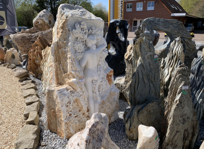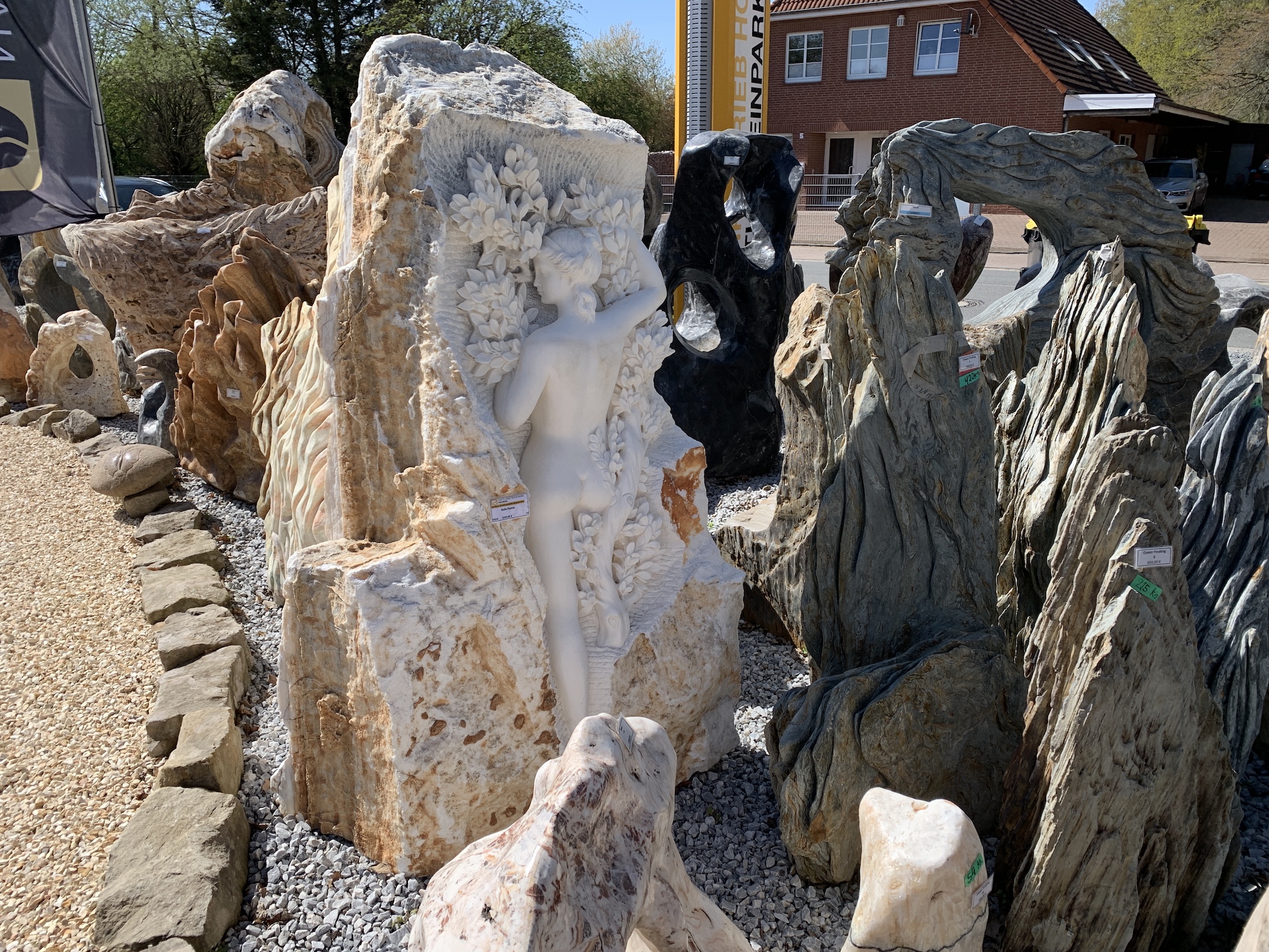 Ein sehr exklusives Bildhauermeisterwerk aus weißem Marmor. Die Skulpturen sind ein echter Blickfang in Ihrem Garten. Die Skulpturen werden entsprechend der Größe und dem Kundenwunsch in kunstvoller Handarbeit aus einem Marmorfindling heraus gearbeitet. Jede Statue ist in Größe und Ausführung ein absolutes Unikat und wird nur auf Anfrage produziert.