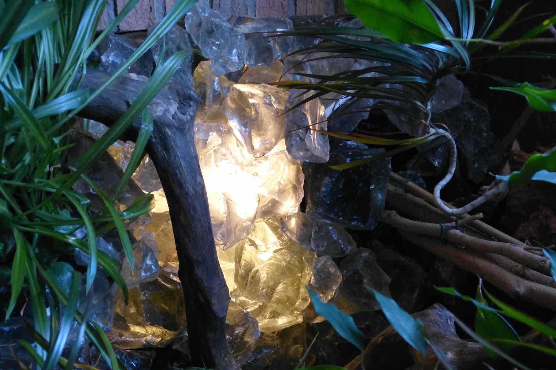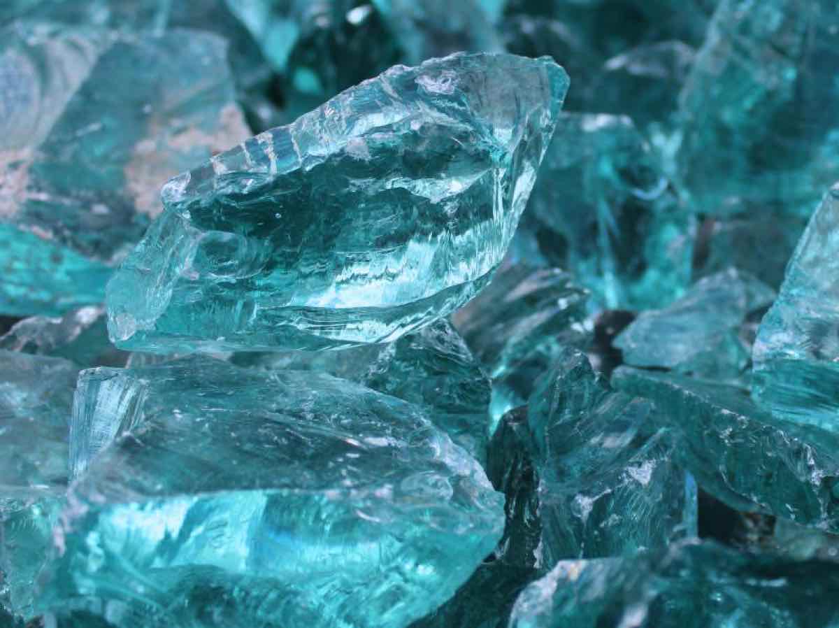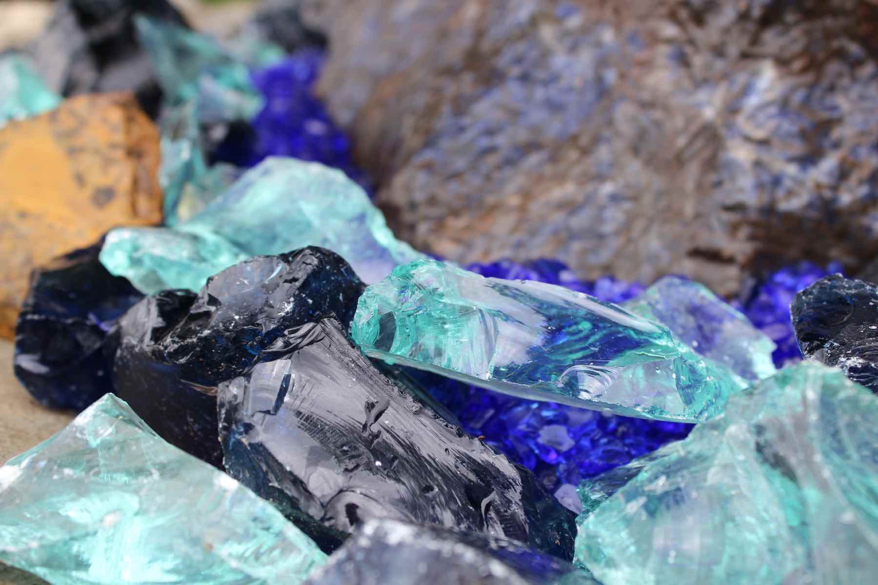 Glas für den Garten. Werten Sie Ihre Gabionen oder Ihren Steingarten mit Glasbrocken auf oder gestalten Sie Trockenbachläufe und Zierbeete mit Glassplitten.