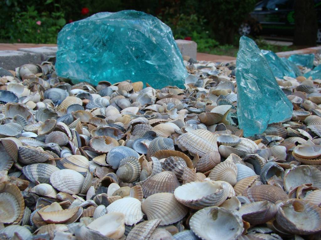 Glas im Garten? Glasbrocken im Garten sind eine schöne Möglichkeit, Akzente zu setzen. Ob im Trockenbachlauf als Dekosteine oder mit passender Beleuchtung. Glas ist eine attraktive Abwechslung zu Stein oder Grün und hat einen ganz eigenen Charme. Die Farbe ist dem Wasser sehr ähnlich und wird daher viel mit dem maritimen Stil kombiniert.