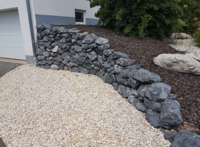 In modernen Gartenanlagen ist dieser schwarze Kalkstein besonders beliebt. Eine sehr dunkle, fast schwarze Grundfarbe wird von weißen Adern durchzogen. Er ist sehr robust und witterungsbeständig. Dieser wunderschöne Bruchstein wird meist als Trockenmauer verwendet, man sieht ihn aber auch immer häufiger auch als Einfassung von Bachläufen. Besonders mit hellen Grautönen oder Farbakzenten lässt er sich einwandfrei kombinieren.