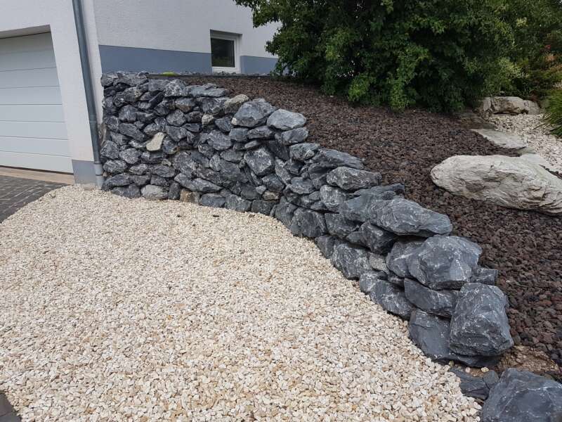 Für einen klassischen, zeitlosen Garten in Schieferoptik ein Muss. Die glatte Oberfläche reflektiert das Sonnenlicht und macht die Mauersteine unempfindlich gegen Witterung. In dieser Größe eignet sich der Stein hervorragend für Trockenmauern, Wasserfälle, Hangverkleidung oder zur Dekoration in Steingärten und Wegplatten. In Trockenmauern ergibt sich durch die unregelmäßige Form ein natürlich wildes Mauerbild.