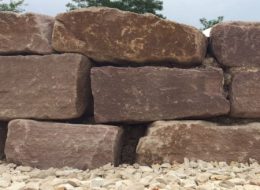 Ein wunderschöner roter Mauerstein der hervorragend in mediterrane oder ländliche Gärten passt. Der Sandstein erlaubt auch nachträgliches Bearbeiten beim Verbau. Im häufiger sieht man ihn an Bachläufen und in Bauerngärten.