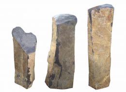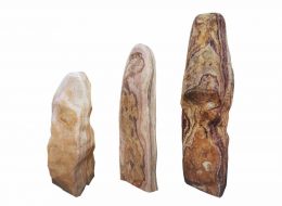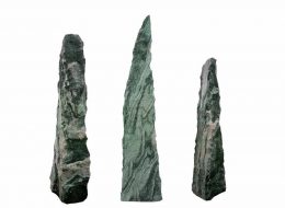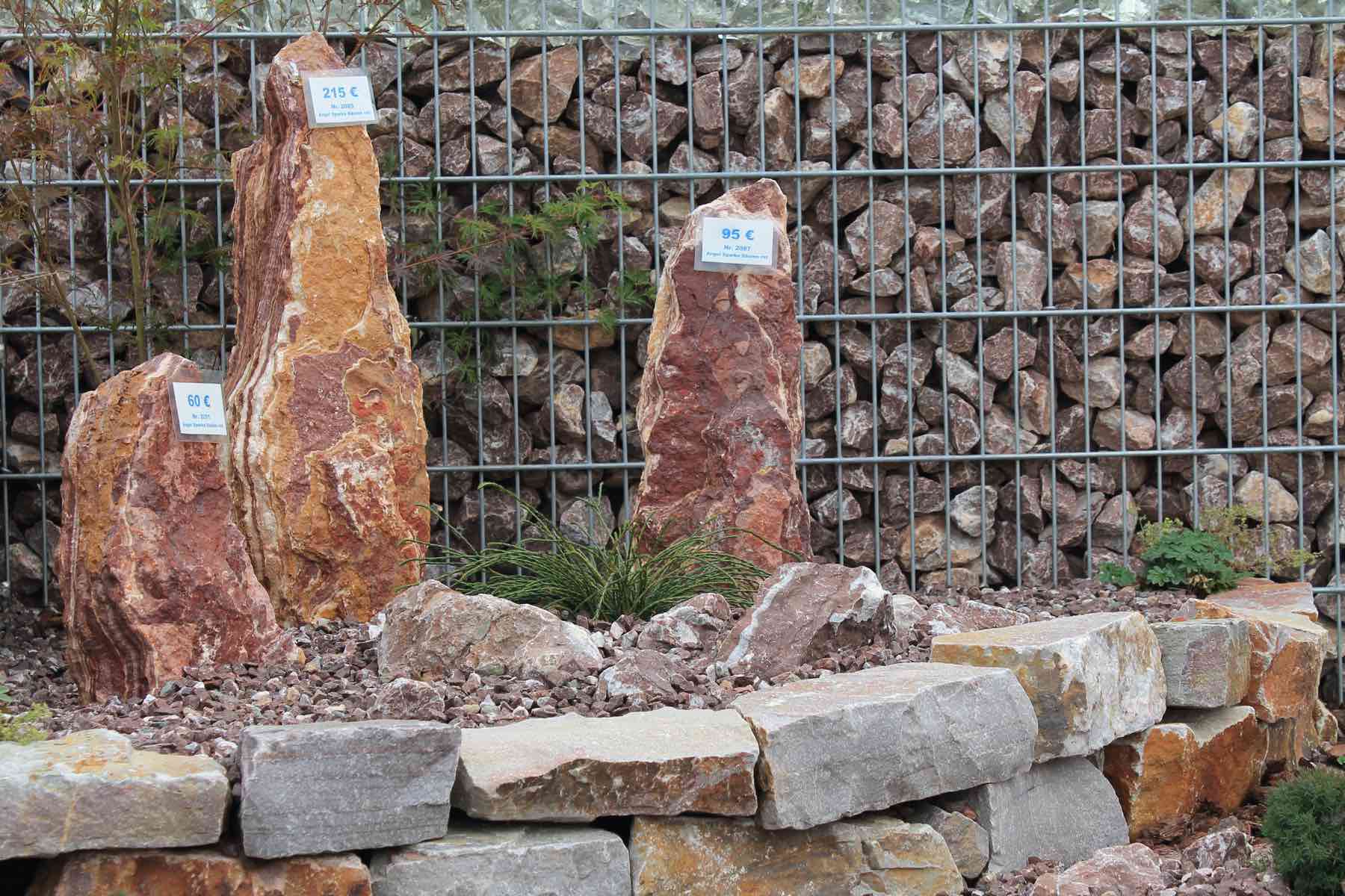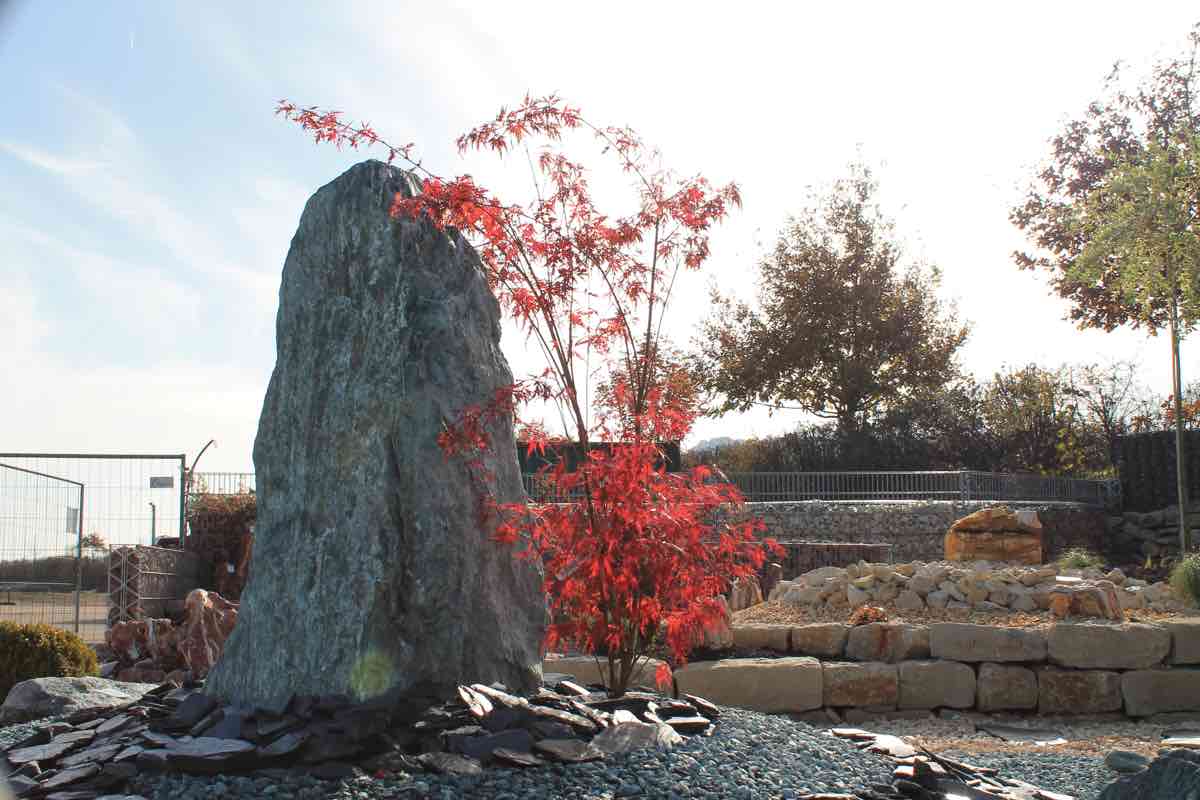 Als Monolithen im Sinne der Gartengestaltung (nicht aus geologischer Sicht) bezeichnet man gebrochene Findlinge die nach Ihren natürlichen Vorbildern bearbeitet wurden. Oftmals ist dies keine große Bearbeitung sondern die Steine werden mit einem Standfuß versehen, also an einer Stelle abgesägt. Dadurch erhält der Stein eine Standfläche die es ermöglicht diesen mit der langen Seite aufzustellen, dies verleiht dem Findling eine imposanteres Aussehen das stark an die großen natürlichen Monolithen erinnert.