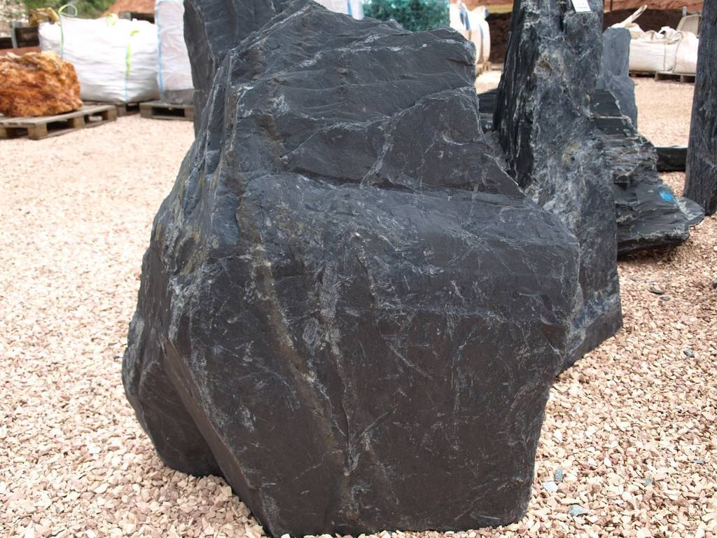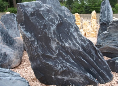 Die klassischen schwarzen Monolithen aus Schiefer erleben gerade eine Renaissance in der Gartengestaltung. Der Schiefer ist besonders dunkel und deshalb hervorragend für moderne Steingärten oder Gärten mit Schieferoptik geeignet.