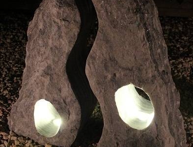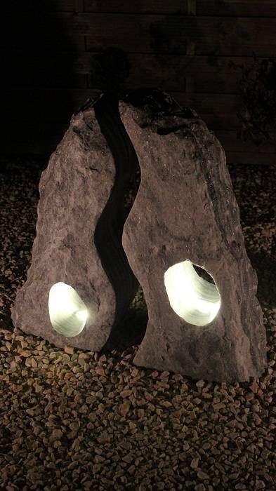 Die Twin Rocks in der Premium Ausführung sind zusätzlich noch mit großen Löchern versehen. In den großen ausgefrästen Löchern sind zusätzlich noch Brunnenlöcher gebohrt die für Wasserspiele und/oder Licht genutzt werden können. Garantiert ein Hingucker im Garten.