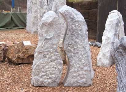 Die grau-blauen Marmormonolithen haben eine edle und frische Optik zugleich. Wer moderne Gärten in Grautönen mag aber die nötige Frische vermisst ist mit diesen Ziersteinen gut beraten. Die Monolithen bestehen wie der Name schon sagt immer aus zwei zusammengehörigen Teilen wobei die Innenseite entsprechend dem Gegenstück gesägt ist. Die Steine bilden z.B. mit dunklen Splitten oder Zierkiesen einen schönen Kontrast. Der gesägte Fuß sorgt für besseren Stand im Garten. Die Premiumausführung hat zusätzlich zwei große Aussparungen die zudem mit einer Brunnenbohrung versehen wird, die Höhe liegt bei 130cm.
