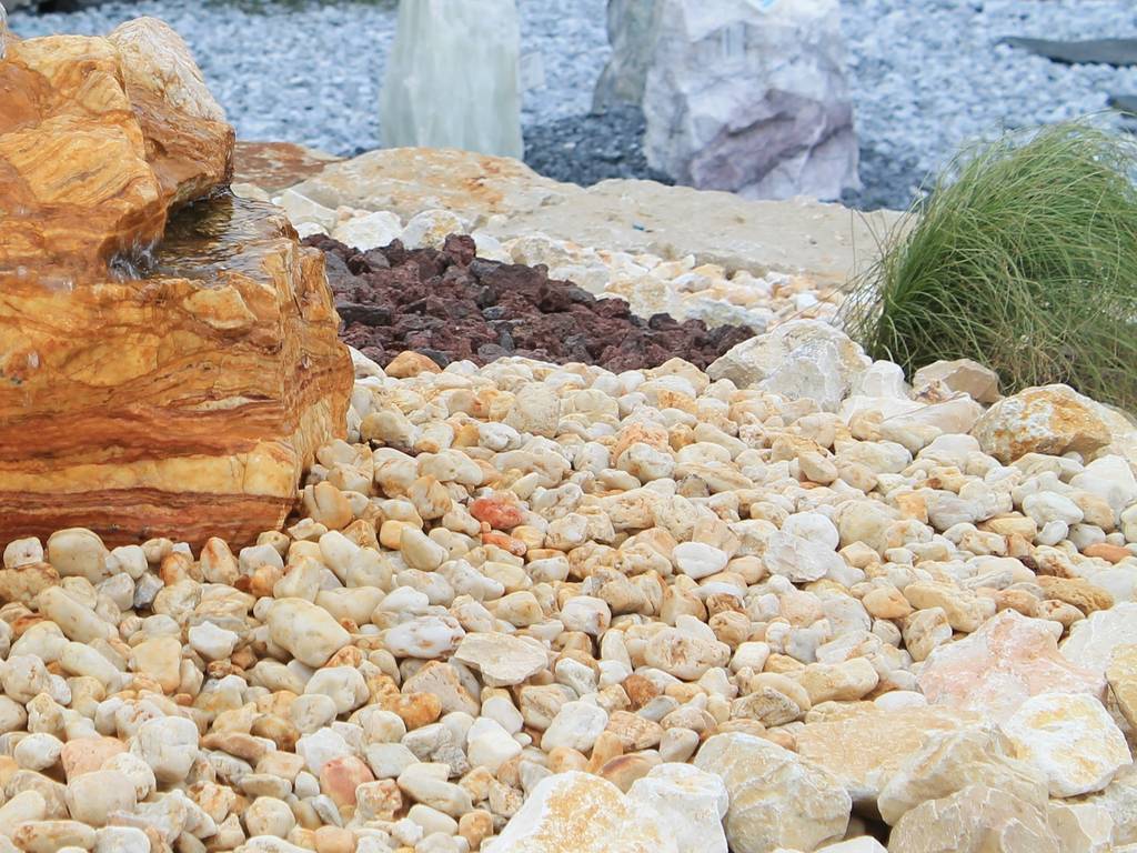 Für den abgerundeten Wohlfühlgarten empfehlen wir unsere Gartenkiese. Die kleinen gerundeten Ziersteine sind nicht nur als reiner Bodenbelag im Vorgarten ein Hingucker, sondern insbesondere auch für Barfußwege der optimale Bodenbelag. In der Gartengestaltung wird Zierkies vor allem in der Kombination mit Brunnen oder Wasserläufen eingesetzt. Durch die abgerundete Form wirkt Kies einfach natürlicher. Bei Zierkies handelt es sich nicht wie bei Ziersplitt um gebrochenes Material, sondern um natürlich oder künstlich gerundete Ziersteine. Flusskiese erhalten von der Natur (z.B. durch Wasser) auf natürliche Weise ihre abgerundete Form. Bei künstlich gerundetem Zierkies spricht man von getrommelten Steinen: Hier wird Ziersplitt oder Zierschotter in großen Trommelanlagen unter Zugabe von Wasser solange gedreht (getrommelt), bis sämtliche scharfen Kanten abgerundet sind und nur doch Kieselsteine übrig sind. Zierkies eignet sich für die ganze Palette der Gartengestaltung: Als dekorativer Belag in Steingärten und Vorgärten, für die Gestaltung von Wegen und Einfahrten, als Füllung in Deko-Gabionen (Gabionenkies) oder bei Wasserspielen und Barfußwegen. Oft fällt deshalb auch der Begriff „Gartenkies“, da Kiese durch die natürliche Form hervorragend mit dem Rest des Gartens harmonieren.