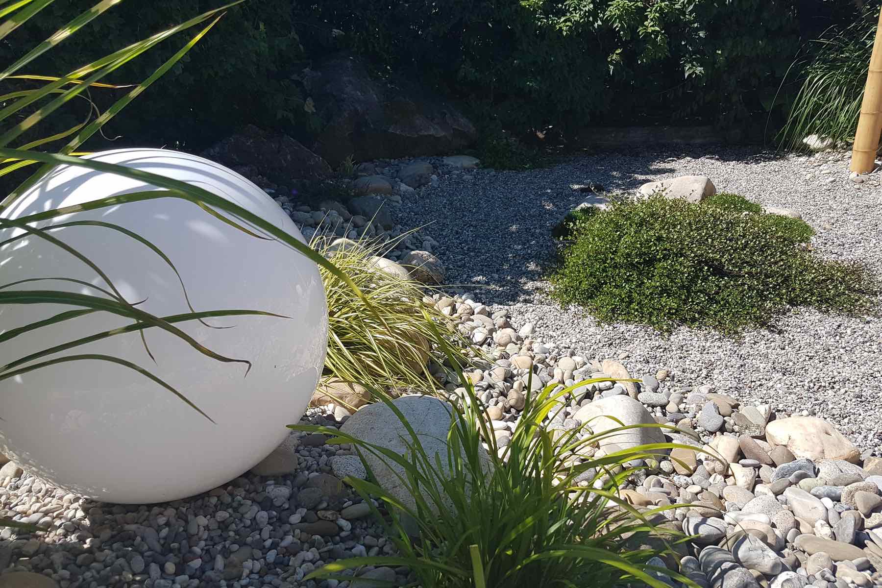 Eine sorgfältige Planung und Vorbereitung ist die Grundvoraussetzung für einen gelungenen Steingarten. Schon bei der Auswahl des Zierkieses empfielt sich eine gute Beratung durch Ihren Gartenbauer oder durch einen fachkundigen „Steinakzente“-Händler. Je nach Anwendung haben die verschiedenen Kieselsteine ihre ganz eigenen Vor- und Nachteile. So ist ein weißer Marmorkies auf schattigen oder feuchten Flächen weniger geeignet wie ein dunkler Basaltkies oder Granitkiesel. Manchmal ist auch ein neuer Unterbau aus Schotter notwendig, damit keine Staunässe entsteht und so der Unkrautwuchs verringert wird. Auf jeden Fall sollte kulturfähiger Boden und Bewuchs im Vorfeld sorgfältig von der Fläche entfernt werden. Zwischen der Dekoschicht aus Zierkies und dem Unterbau kommt in der Regel eine Unkrautfolie oder ein Vlies zum Einsatz um den Wildwuchs zusätzlich einzudämmen. Die Kiesschicht wird am besten mit einer Harke oder einem Rechen gleichmäßig auf der Fläche verteilt. Ausführliche Anleitungen für die richtige Vorbereitung und Umsetzung finden Sie in unserem Gartenblog.