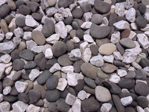 Der Kies von der Donau hat eine besonders elegante graue Farbgebung, die mit weißen Quarzitadern durchzogen sind und somit auf jedem einzelnen Stein kleine Akzente setzen. Besonders im Teichbau und als Bachläufe wird dieser Kies häufig verwendet.