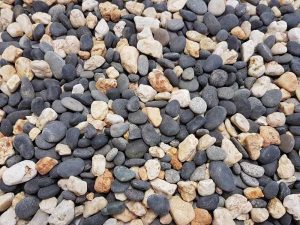 Dieser Zierkies hat eine besonders elegante graue Farbgebung; weiße Quarzitadern in den einzelnen Steinen sorgen für Abwechslung uns trotzdem bleibt das Gesamtbild ruhig. Besonders beliebt ist der Kies in dieser Größe für Barfußwege.