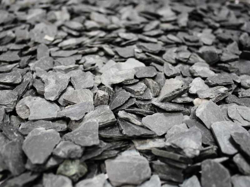 Schöne große, schwarze Schieferchips. Für einen klassischen, zeitlosen Garten in Schieferoptik ein Muss. Die glatte Oberfläche reflektiert das Sonnenlicht leicht silbrig und macht die Chips unempfindlich gegen Witterung. Besonders als Kontrast zu Farbakzenten oder Beete mit feinerer Körnung ist dieser Schotter eine zeitlose Lösung.
