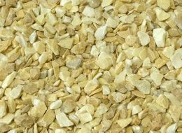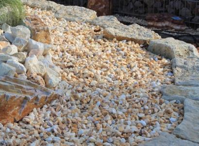 Dieser Marmorsplitt aus gelben und weißen Steine sorgt für Abwechslung und Frische im Garten. Ein modernes und mediterranes Flair strahlt dieser Marmor aus. Holen Sie sich das Urlaubsfeeling nach einem warmen Sommerabend ganzjährig in den eigenen Garten! Für einen Marmor ist er eher robust in seinen Materialeigenschaften und eignet sich daher gut für Ziergätrten und Wegebau. Im farblichen Zusammenspiel mit terrakottafarbenen Elementen holen Sie sich Ihr ganz persönliches Urlaubsparadies nach Hause.