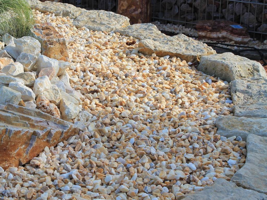 Der gelbe Quarzkies ist eine echte Alternative zu gelben Marmorkiesen. Auf der Fläche wirkt er sehr edel und ist dabei mit seiner natürlichen, gerundeten und glatten Oberfläche äußerst robust gegen Umwelteinflüsse. Er wird häufig in Kombination mit farbintensivem dunklen Gestein verwendet, aber auch in Gärten im mediterranen Stil ist er immer häufiger zu finden. Besonders Grünpflanzen haben auf gelblichen Steinen eine höhere Farbintensität.