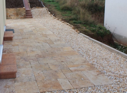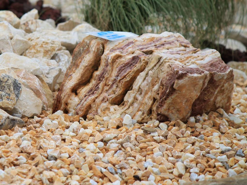 Dieser Marmor hat eine mediterrane, gelbliche leicht rosa und orange schimmernde Farbgebung. Im nassen Zustand wird die Farbe intensiver und macht seinem Namen alle Ehre. Er lässt sich wunderbar mit Sandstein, grauem Gestein und Pflanzen kombinieren. Trotz seiner aufregenden Farbe bleibt er neutral und und gibt ein einheitliches Bild ab. Auch in Kombination mit rötlichen Ziersplitten sorgt er für die nötige Ruhe im Steingarten und gibt im Gesamtbild ein ganzjährig mediterranes Urlaubsgefühl.