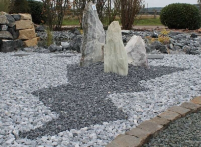 Besonders in modernen Gartenanlagen gewinnt dieser Ziersplitt aus Kalkstein immer mehr an Beliebtheit. Seine sehr dunkle fast schwarze Grundfarbe wird von kleinen weißen Adern durchzogen, das ist sein Markenzeichen. Im Zusammenspiel mit hellem Splitt, Findlingen o.ä. bietet dieser Quarzit im richtigen Maß Kontrast für ein schönes gleichmäßiges Garten Kunstwerk. Der Stein ist robust, witterungsbeständig und sehr pflegeleicht in seiner Verwendung.