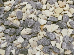 Einem klassischen Basaltsplitt und einem hellgrauen Quarzsplitt. Beide Materialien sind Klassiker für Ziergärten und aufgrund ihrer Farbe zeitlos, pflegeleicht, witterungsbeständig. Somit ein absolutes Must-Have für jeden klassischen oder modernen Garten. Aufgrund der Materialeigenschaften eignet sich dieser Mix besonders für den Wegebau.